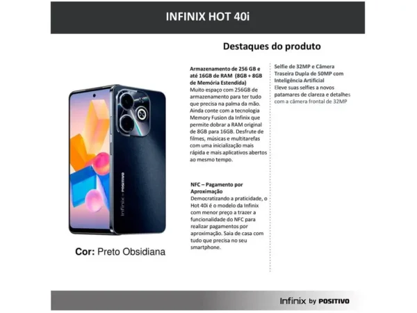 Smartphone Infinix Hot 40i – Espaço de Sobra e Fluidez no Dia a Dia